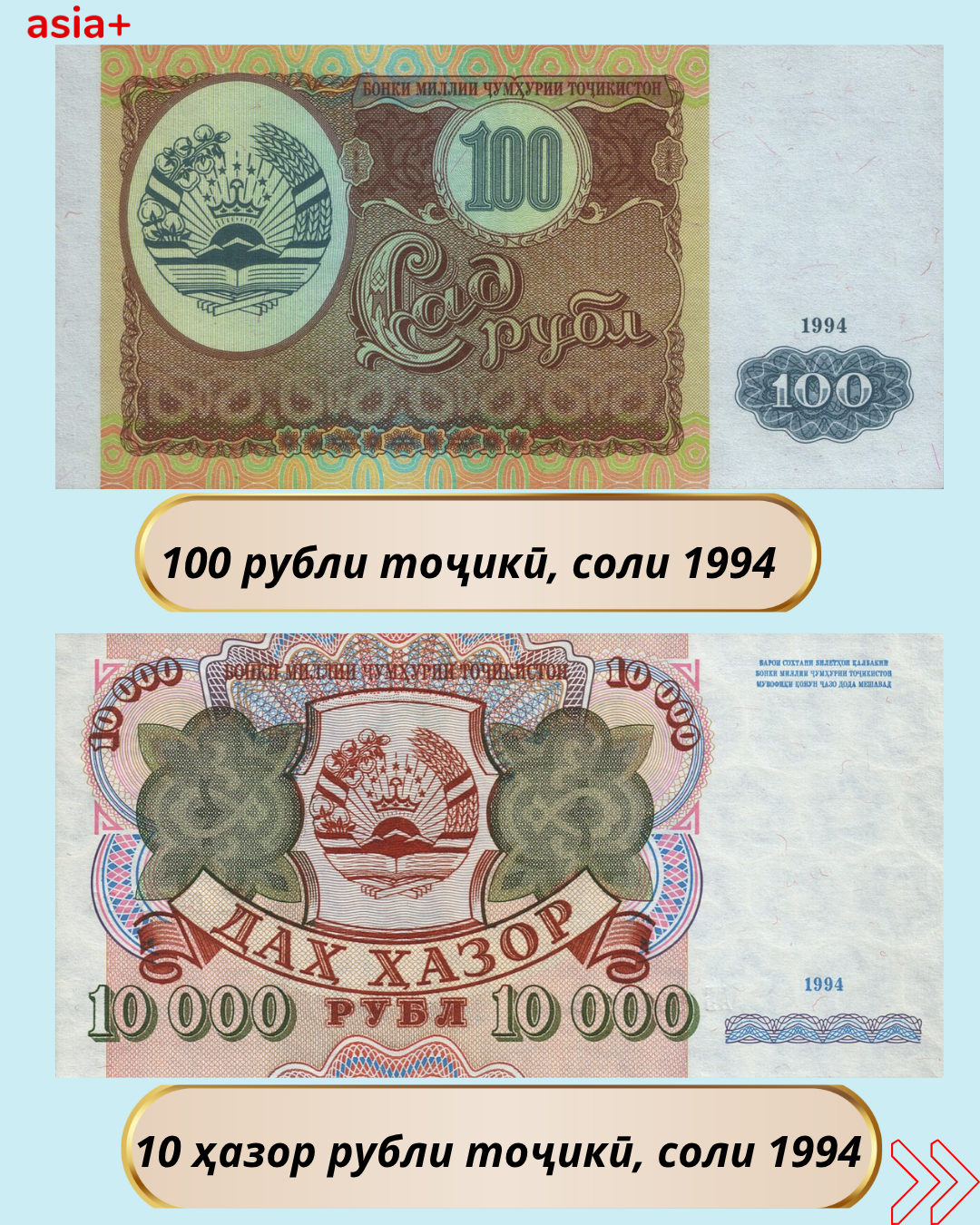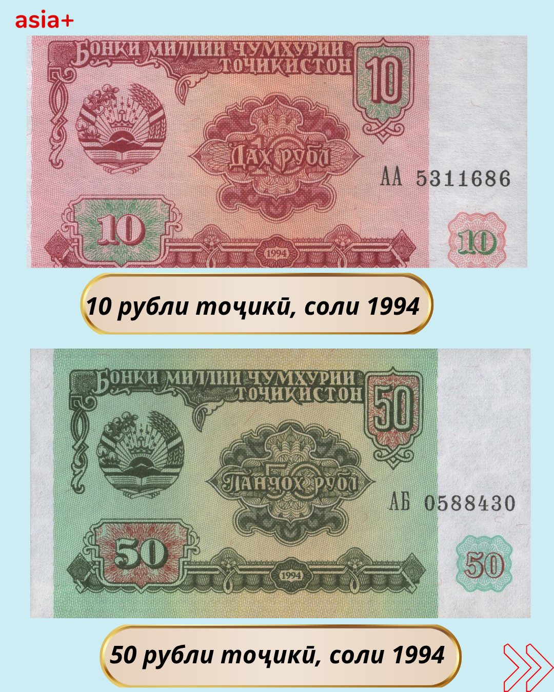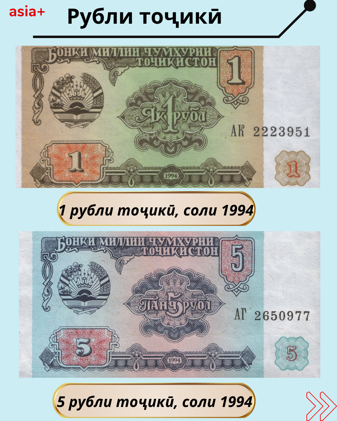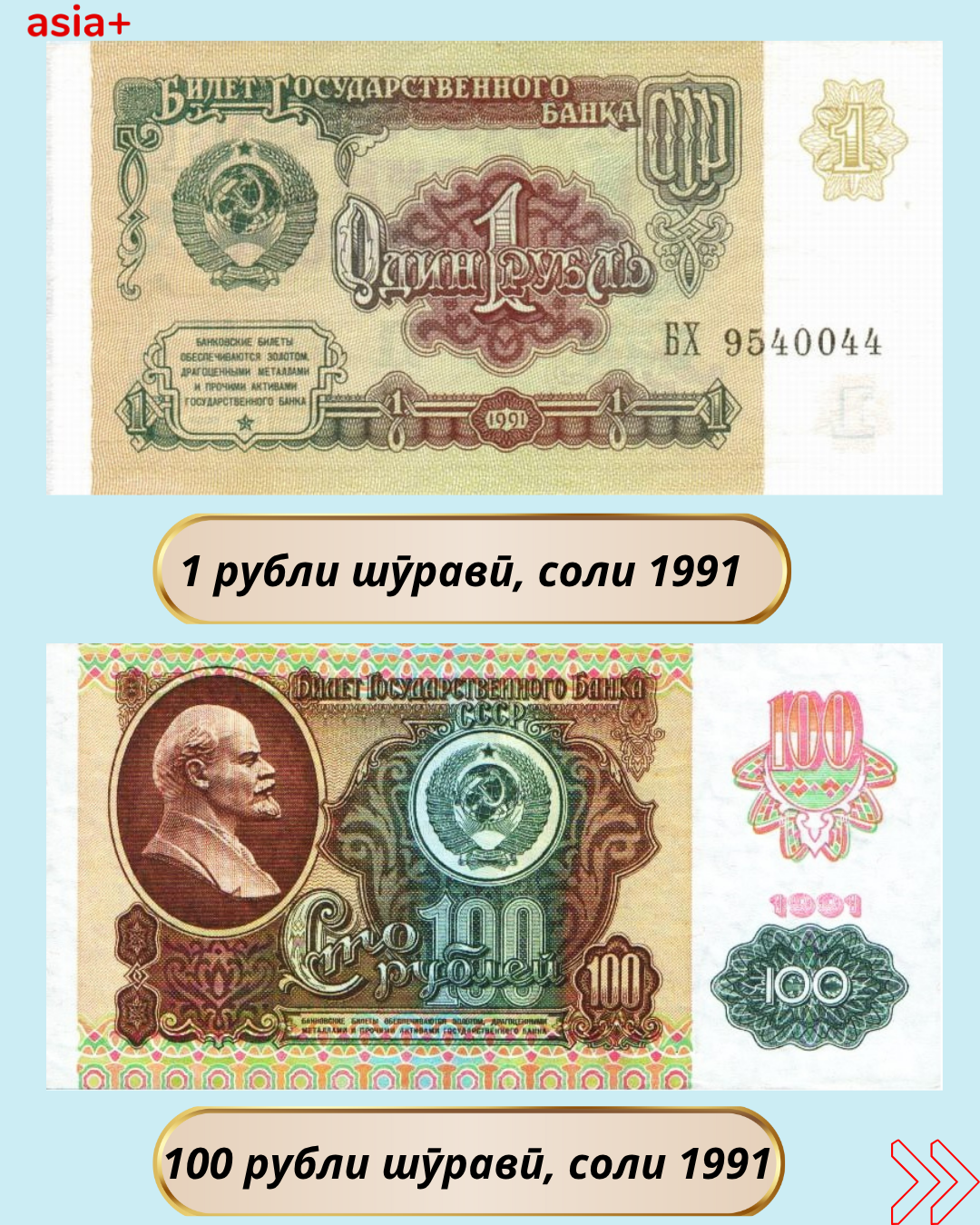Дар баргаҳои мо бубинед, ки дар давраи Иттиҳоди шуравӣ кадом воҳидҳои пулии рубли шуравӣ бо барориши солҳои гуногун истифода мешуданд: