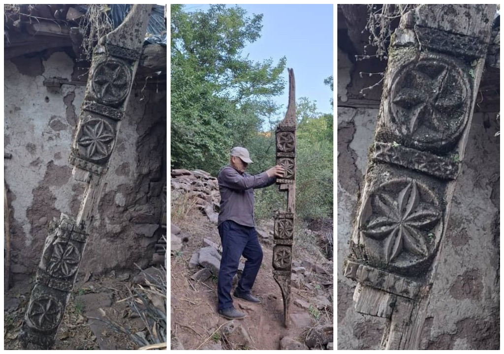 Гуфта мешавад, ки ин сарсутун, аз ҷониби ҳунармандони Хутали қадим кандакорӣ шуда, дар он навиштаҷот низ ҳаккокӣ шудааст. Ба қавли Оҷонсӣ, навиштаҷоти ҳаккокишуда аз ҷониби таърихинигорон омӯхта мешавад.