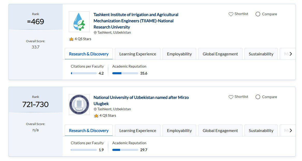 Ҳузури рӯзафзуни донишгоҳҳои Ӯзбекистон дар радабандиҳои байнулмилалии академӣ ба афзоиши ҷолибияти онҳо мусоидат мекунад. Шомил шудани донишгоҳҳое, мисли Донишгоҳи миллии Ӯзбекистон ва Донишгоҳи миллии таҳқиқотии "Донишкадаи муҳандисони обёрӣ ва механизатсияи кишоварзии Тошканд" ба рӯйхатҳои QS World University Rankings ва THE Impact Rankings гувоҳи он аст, ки онҳо ба меъёрҳои муайяни ҷаҳонӣ дар соҳаи маориф ва илм мутобиқат мекунанд.