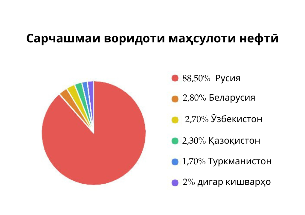 Маҳсулоти нафтӣ аз кишварҳои зерин ворид карда шудааст: