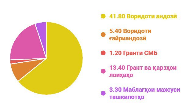 Дар лоиҳаи буҷети давлатии соли оянда воридоти маблағ ба буҷет аз сарчашмаҳои зерин пешбинӣ шудааст: