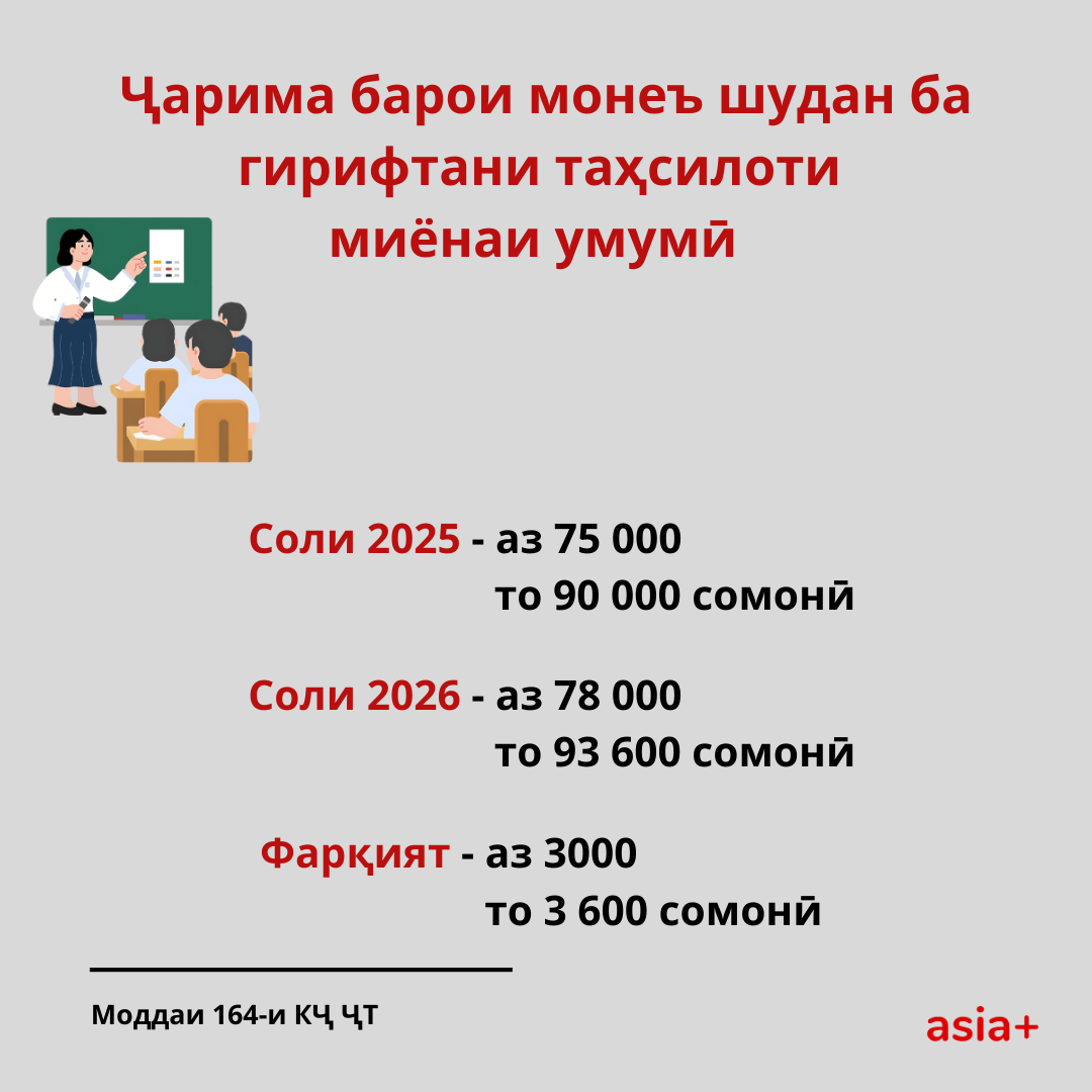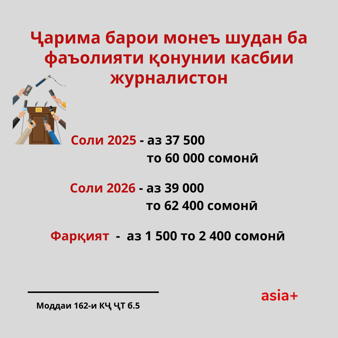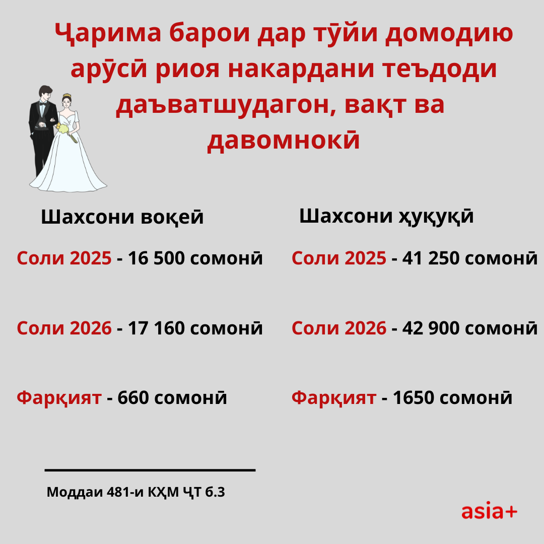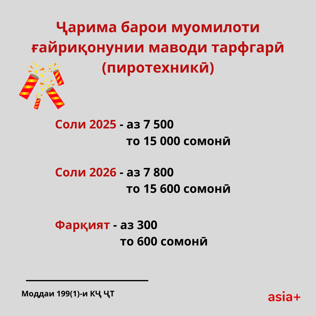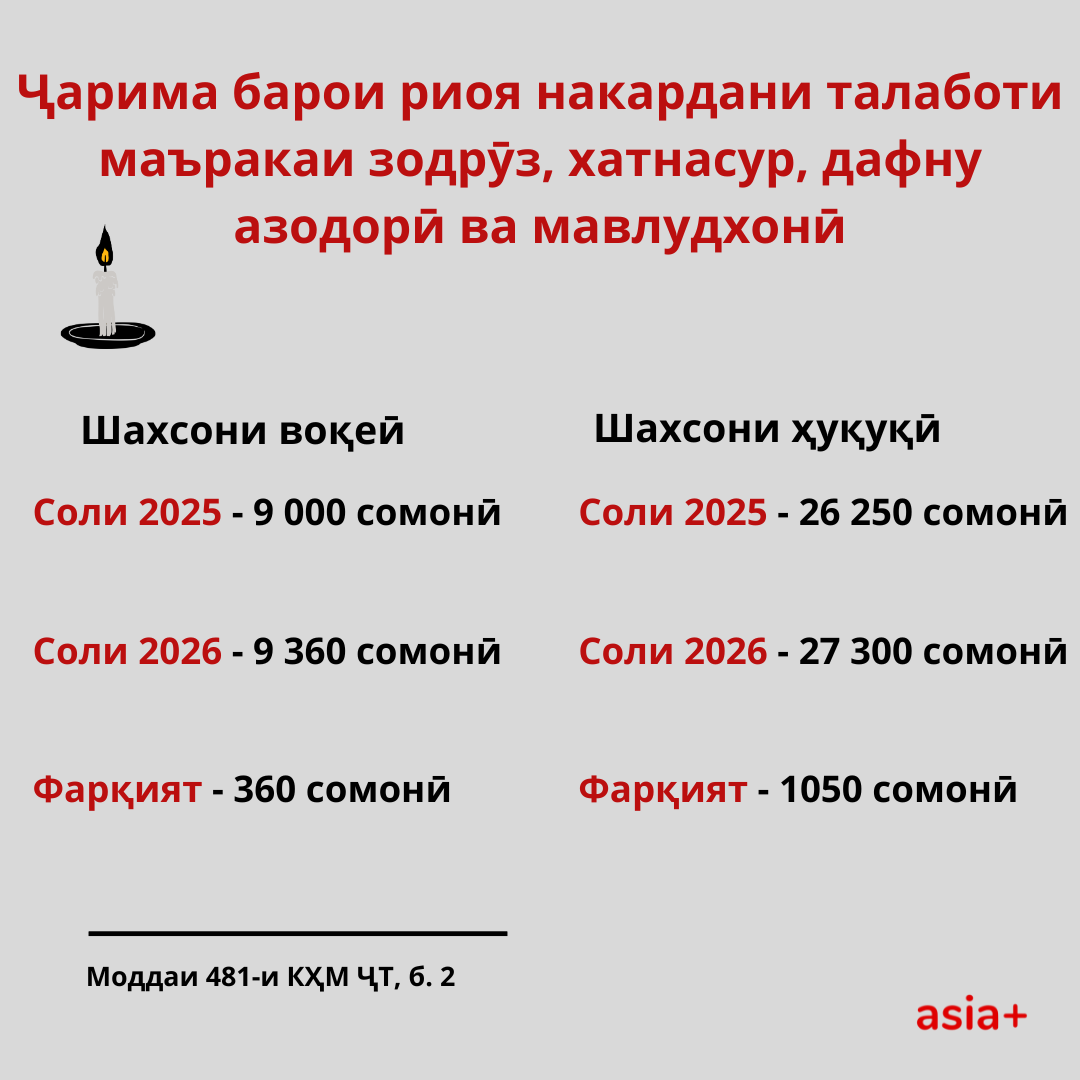 Бо зиёд шудани нишондиҳанда барои ҳисобҳо, аз ҷумла, ҳаҷми ҷарима барои қонуншиканиҳо зиёд мешавад. Дар ин мавод андозаи ҷаримаи қонуншиканиҳои дар ҷомеа маъмулро, ки дар Кодекси ҷиноӣ ва Кодекси ҳуқуқвайронкунии маъмурӣ муқаррар гардидаанд, барои соли 2026, бо ишораи ҷаримаи ҳозира ва фарқияти арзиши болоравиашон гирд овардем.