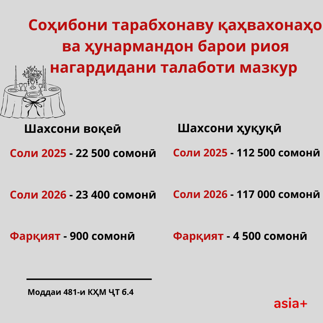 Аз 1-уми январи соли 2026 нишондиҳанда барои ҳисобҳо аз 75 сомонӣ ба 78 сомонӣ боло меравад. Бо зиёд шудани ин нишондиҳанда андозҳо, боҷҳо, ҷаримаҳо, пардохтҳои ҳатмӣ, кӯмакпулиҳои иҷтимоӣ, иловапулиҳо ва дигар пардохтҳо низ афзоиш меёбанд.