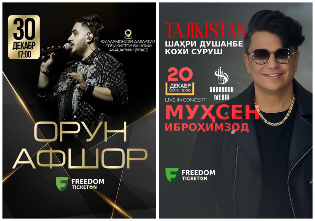 Орун (Арон) Афшор ва Муҳсин Иброҳимзода, ду сарояндаи маъруфи эронӣ моҳи декабр ба Тоҷикистон омада, дар пойтахти кишвар консерт доир мекунанд.