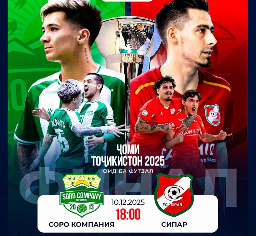 – Имрӯз, соати 18:00 дастаҳои футзали “Сипар”-и Хуҷанд ва “Соро компания”-и Душанбе барои дарёфти Ҷоми Тоҷикистон–2025 мубориза мебаранд. Ин рақобат дар Маҷмааи варзишии Кумитаи андоз баргузор мешавад.