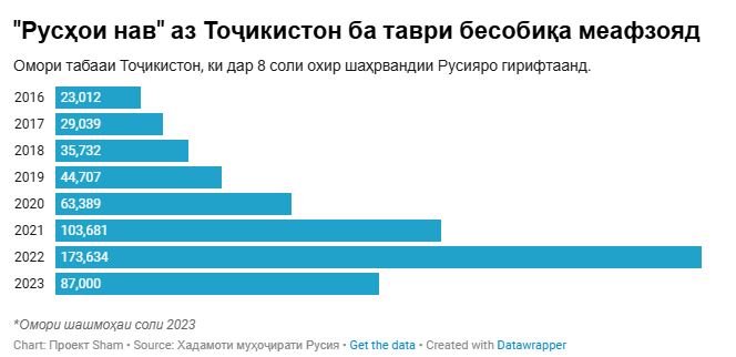 Воқеан, солҳои пеш дар гирифтани шаҳрвандии Русия аз сӯи зодагони Осиёи Марказӣ, махсусан Тоҷикистон зиёд буд. То соли 2023 ВКД Русия ҳам омори гирандагони шаҳрвандии Русияро нашр мекард. Масалан, танҳо дар 7 сол (2016-2022) дар маҷмуъ, беш аз 473 ҳазор шаҳрванди Тоҷикистон табааи Русияро гирифтаанд. Вале бо шурӯи ҷанги ин кишвар дар Украина, ин ниҳод дигар ин оморро нашр намекунад.