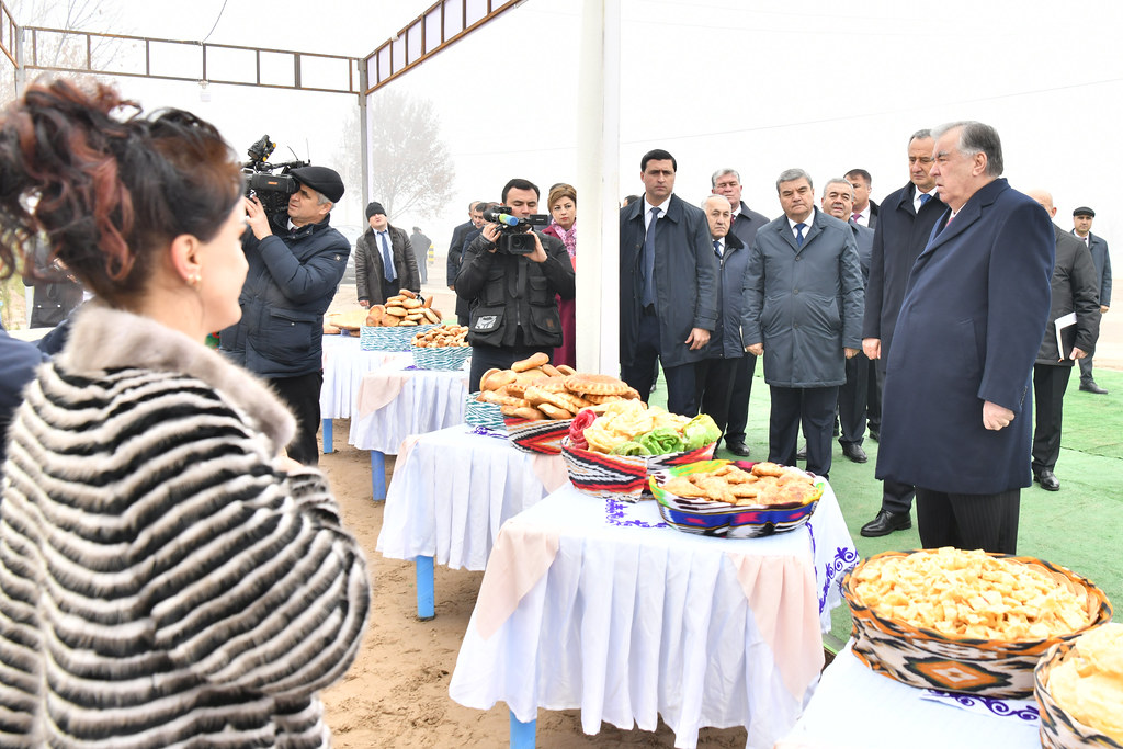Дар идома Эмомалӣ Раҳмон аз намоиши маҳсулоти кишоварзӣ, маҳсулоти консервашуда, полезӣ ва ғалладонагию лӯбиёгиҳо дар ноҳияи Ҷайҳун дидан кардааст.