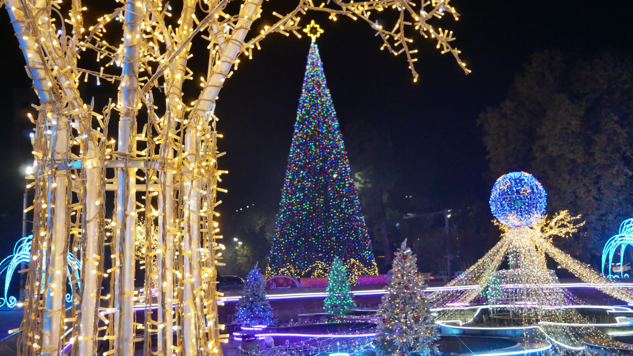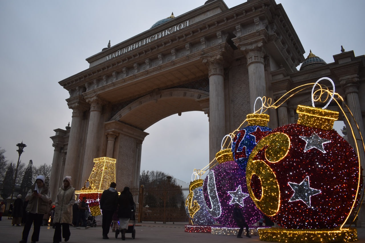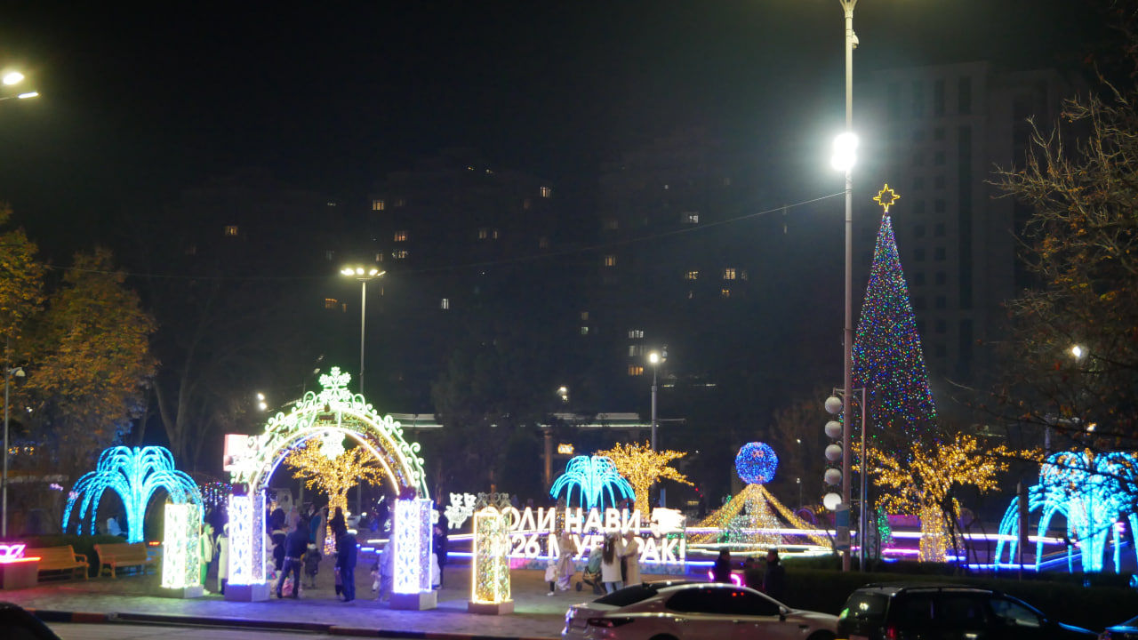 Шаҳри Душанбе бо шукӯҳу шаҳомат ба истиқболи Соли нави 2026 омода мешавад. Дар маркази диққат арчаи солинавӣ қарор дорад, ки дар майдони Истиқлоли пойтахт қомат афрохтааст.