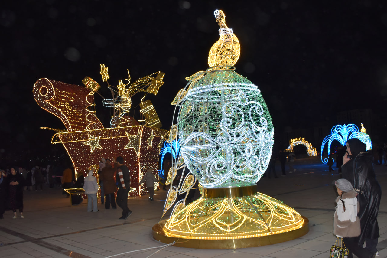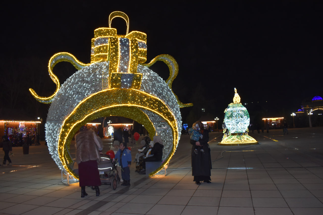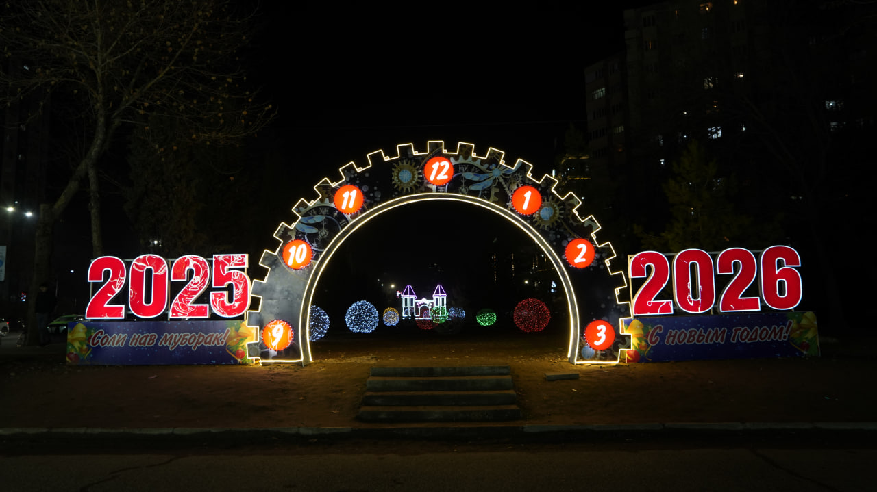 Атрофи арча ба як шаҳраки афсонавии солинавӣ табдил ёфтааст. Дарвозаҳои рамзӣ бо навиштаҷоти "2026" ба меҳмонон хушомад мегӯянд. Манзараи идона бо аркҳои рангоранг, арчаҳои хурди сабз, одамчаҳои барфии табассумкунанда ва хонаи пуррамзу рози бобои барфӣ пурра мегардад.