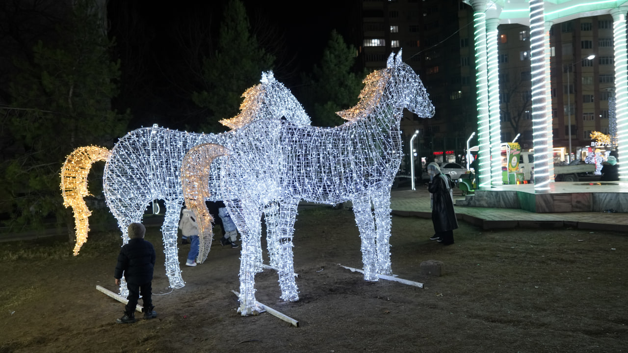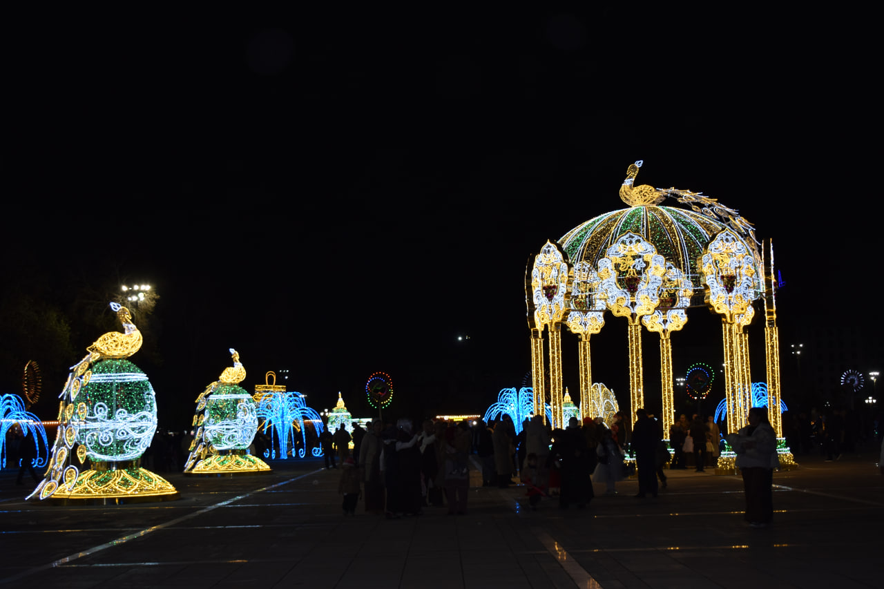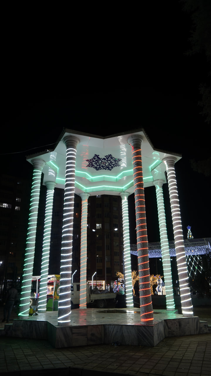 Дар назди бинои Сирки давлатӣ ҳам арчаи зебо бо чароғҳои рангоранг ва бозичаҳои зебои солинавӣ қомат афрохтааст.
