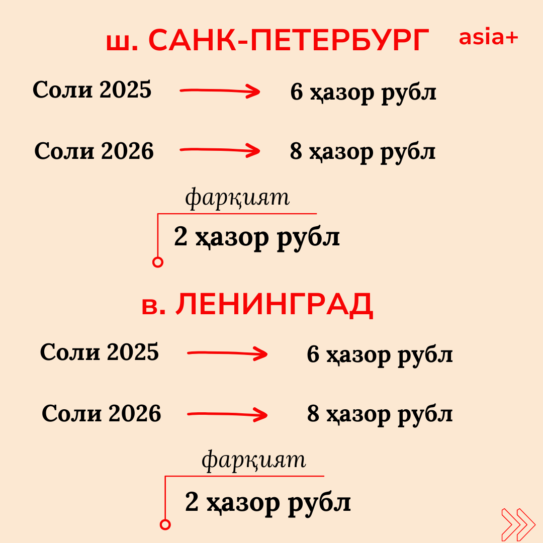 Аз ҷумла, нархи иҷозатномаи кор барои муҳоҷирон дар шаҳри Маскав ва вилояти он аз 8,9 то 10 ҳазор рубл, дар шаҳри Санкт-Петербург ва вилояти Ленинград – аз 6 то 8 ҳазор рубл боло рафт.
