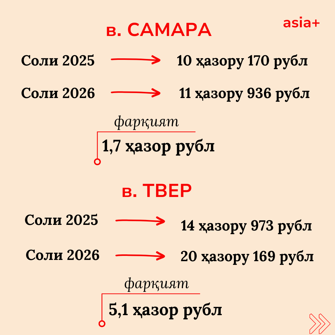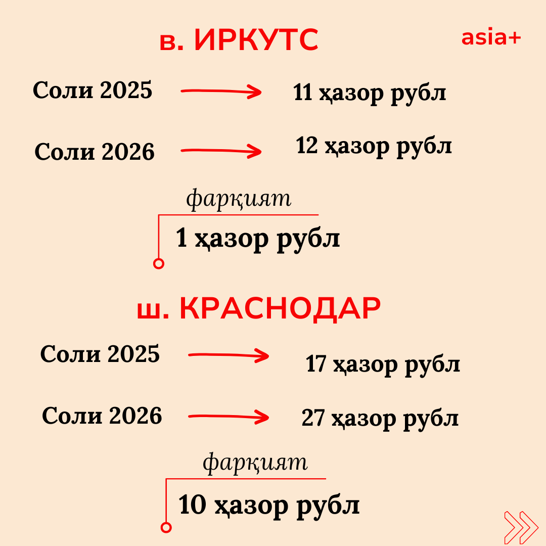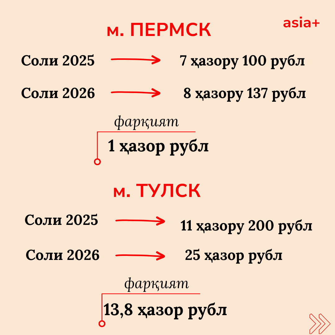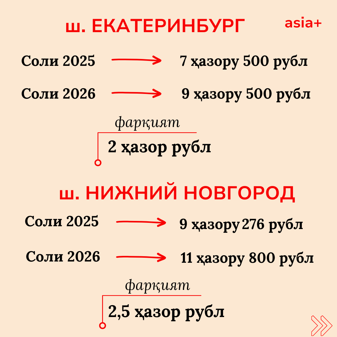 Имсол нархи муҷаввизи кор дар шаҳру минтақаҳои Русия барои муҳоҷирони меҳнатӣ чӣ қадар муайян шудааст, дар баргаҳои мо бубинед:
