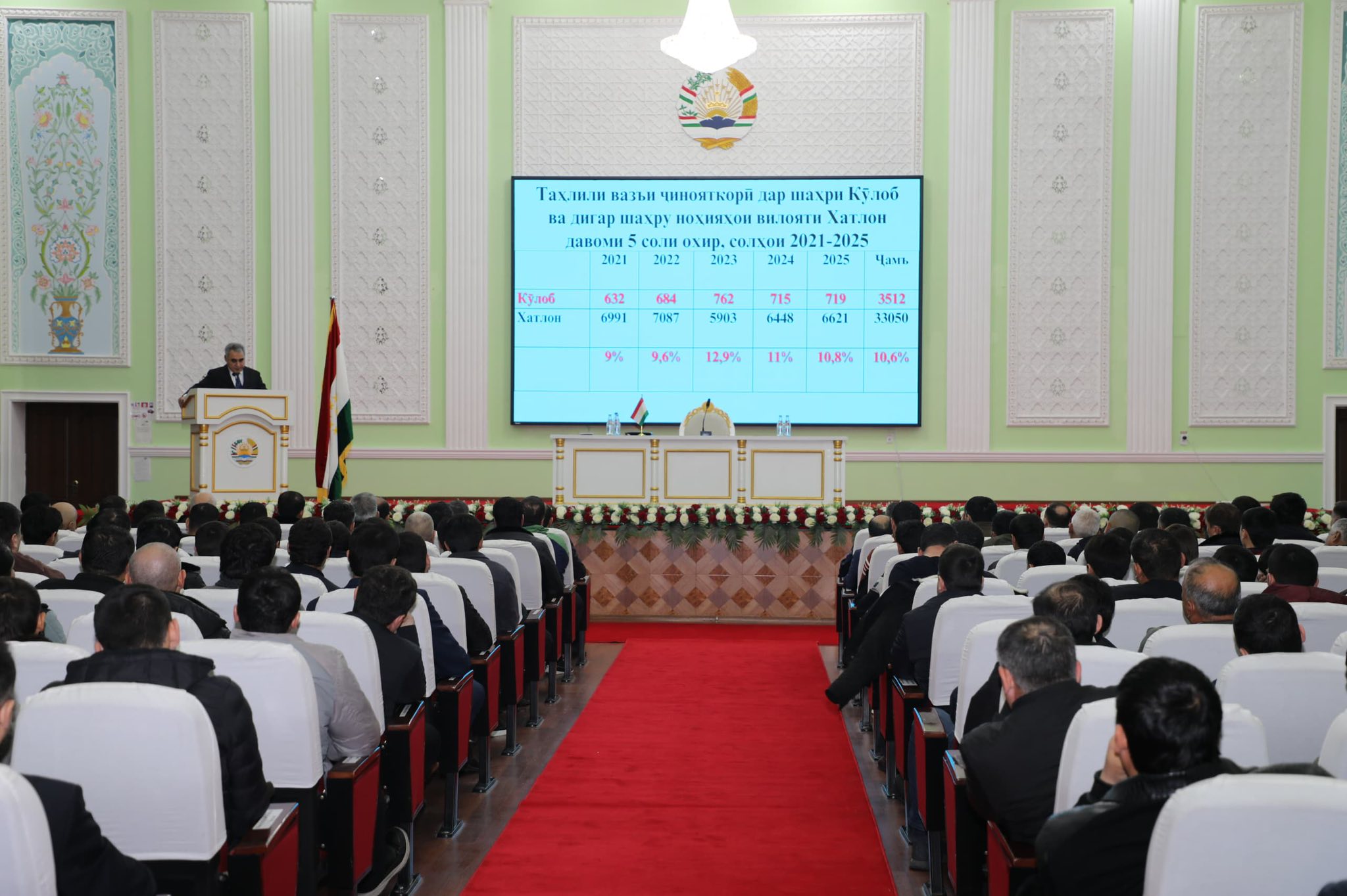 Тибқи иттилои расмӣ, давоми соли 2025-ум дар ин шаҳр 719 ҷиноят содир шудааст, ки ин нишондиҳанда нисбат ба панҷ соли пеш қариб 90 ҳолат зиёд аст. Дар вилояти Хатлон соли гузашта 6 ҳазору 621 ҷиноят ошкор шудааст, ки нисбат ба соли 2024-ум 173 ҷиноят (6 ҳазору 648) зиёд аст.
