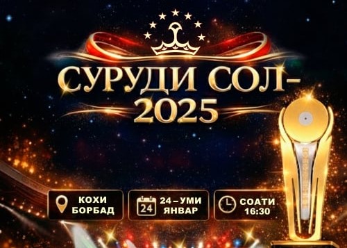 – Имрӯз дар Кохи Борбад ҷоизасупории “Суруди сол – 2025”, ки чанд соли охир аз сӯи Вазорати фарҳанги Тоҷикистон гузаронида мешавад, доир мегардад. Чорабинӣ соати 16:30 оғоз хоҳад шуда, 24 овозхон бо ҷоиза қадрдонӣ мешаванд. Арзиши чипта аз 250 то 400 сомонӣ аст.