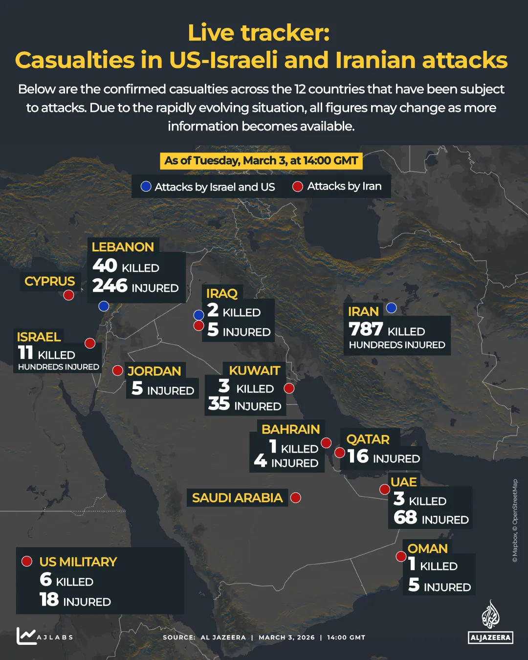 Ин кишвар гуфтааст, ки дар ҳамлаи ИМА ва Исроил алайҳи Эрон ширкат накардааст, вале бештарин зарбаро дар Ховари Миёна дидааст.