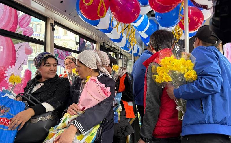 Аз оғози масир – назди истгоҳи роҳи оҳан, дар автобус фазои идона ҳукмфармо буд. Занон ва модароне, ки дар истгоҳҳо ба автобус менишастанд, бо “сюрпризҳо” рӯ ба рӯ мешуданд: саёҳати ройгон, гулҳо, туҳфаҳо ва баромадҳои зиндаи ҳунармандон.