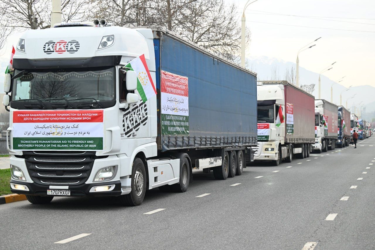 Мақомоти Тоҷикистон гуфта буданд, ки ёрии башардӯстона ба Эрон аз 3 ҳазору 610 тонна бор, аз ҷумла, аз 45 тонна доруворӣ, маводи беҳдоштӣ, сару либоси кӯдакона, анвои гуногуни хӯрокворӣ, ашёи рӯзгор, рахти хоб, хаймаҳо, масолеҳи сохтмонӣ ва дигар лавозимот иборат буда, дар 110 мошини борбар равон шудааст.
