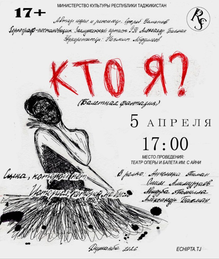 – Имрӯз соати 17:00 дар Театри опера ва балети ба номи Садриддин Айнӣ намоиши “Ман кистам?” (“Кто Я”) ба саҳна гузошта мешавад. Арзиши билет аз 50 то 80 сомонӣ вобаста ба ҷойи нишаст буда, дар сомонаи chipta.tj дастрас аст.
