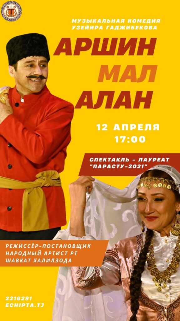 – Имрӯз соати 17:00 дар Театри давлатии опера ва балети ба номи Садриддин Айнӣ намоиши мусиқавии ҳаҷвии “Аршин мололон” ба саҳна гузошта мешавад. Арзиши билет 33 сомонӣ буда, дар сомонаи echipta.tj дастрас аст.