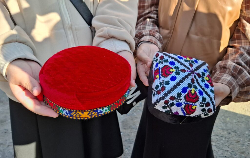 Пеш аз вуруд ба мактаб, духтарҳо ба сар тоқӣ мегузоранд