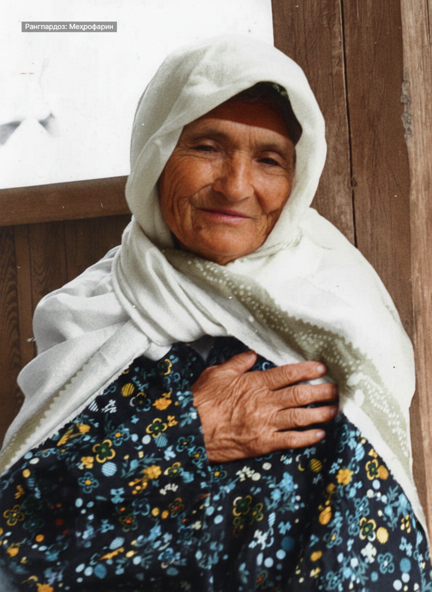 “Модари чашминтизор… Онро вақте шодравон Муҳиддин Олимпур ба аёдати модари шоир мераванд, ҳангоми гусел аксбардорӣ мекунанд”, – чунин қисса кард муаллима Зебуннисо.