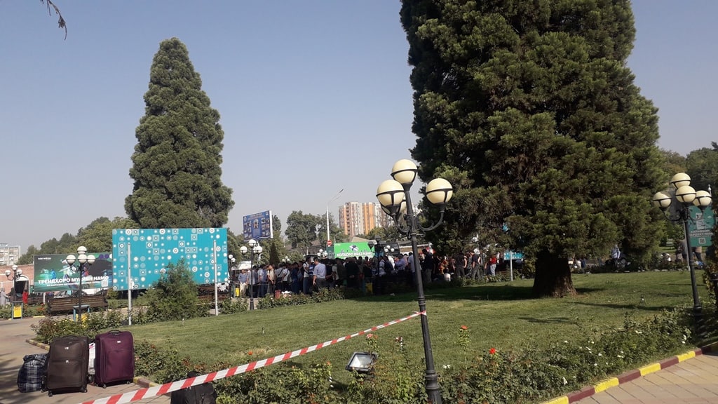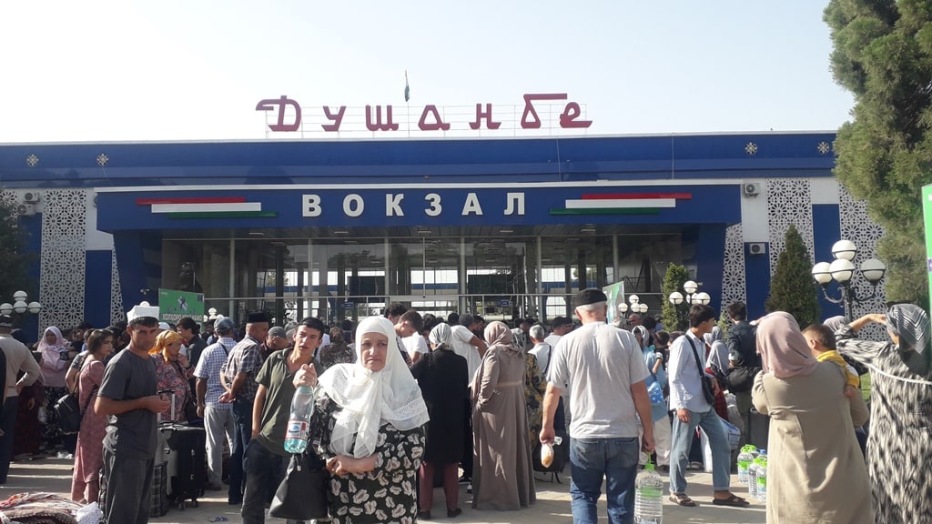 Истгоҳи роҳи оҳани Душанбе серодам буд, зеро аксари мусофирони хатсайри мазкур аз Душанбе чипта харидорӣ карда буданд. Байни мусофирон занону кӯдакон ва нафарони солманд низ мушоҳида мешуданд. Ҳамаи онҳо барои сафар ба Русия омодагӣ медиданд.