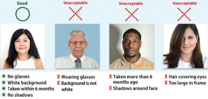 Истифодаи аксҳое, ки аз шаҳодатномаи ронандагӣ ё дигар ҳуҷҷатҳои расмӣ скан карда шудаанд, манъ аст. Илова бар ин, аксҳо аз маҷаллаҳо, аксҳои селфи, ба камераи телефони мобилӣ гирифта шуда ва аксҳои ба тамоми қад қабул карда намешаванд.